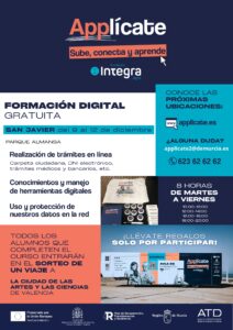 Applícate: sube, conecta y aprende, promocionado por la Fundación Integra Digital Se ofrece formación digital gratuita que se impartirá en un aula móvil ubicada en San Javier y se emplazará en el
