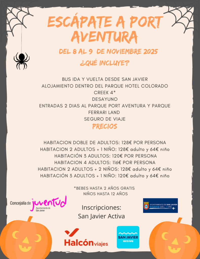 Este noviembre, haz una escapada llena de emociones y diversión con San Javier Activa. Del 8 al 9 de noviembre de 2025, únete a esta fantástica experiencia que te llevará a uno de los parques temáticos más icónicos de Europa, Port Aventura, y a la exclusiva zona de Ferrari Land.