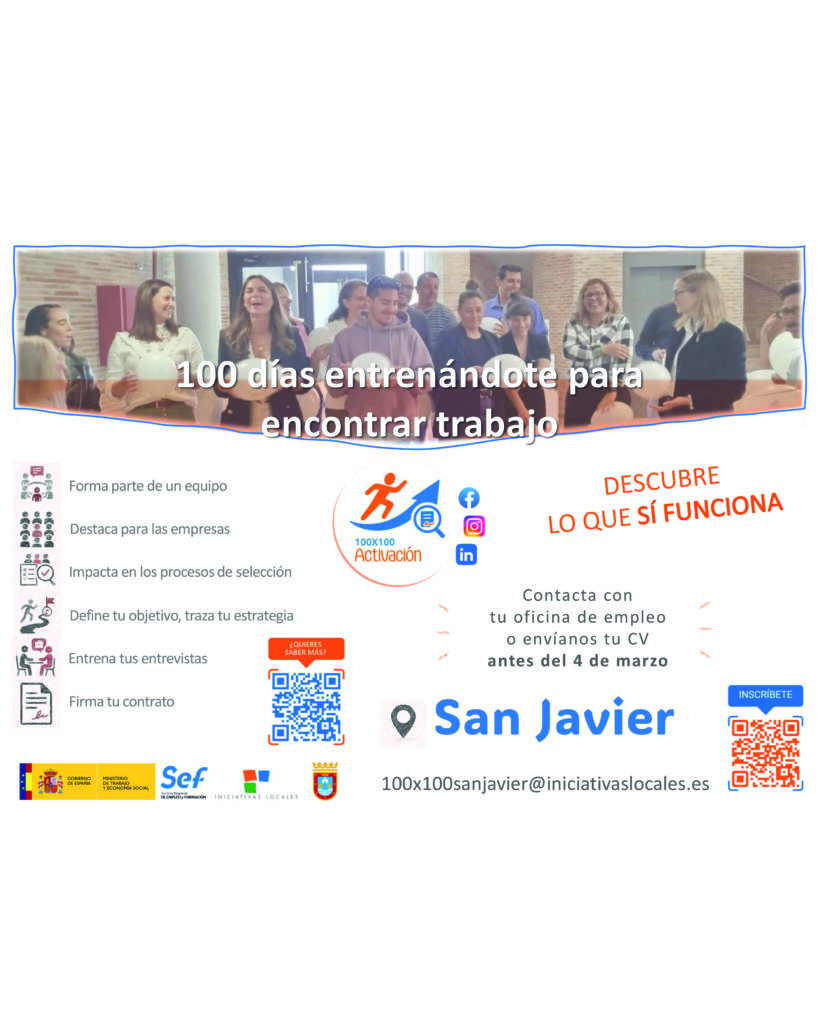 ¿Qué debo hacer si estoy interesado/a? enviar el CV a 100x100sanjavier@iniciativaslocales.es.